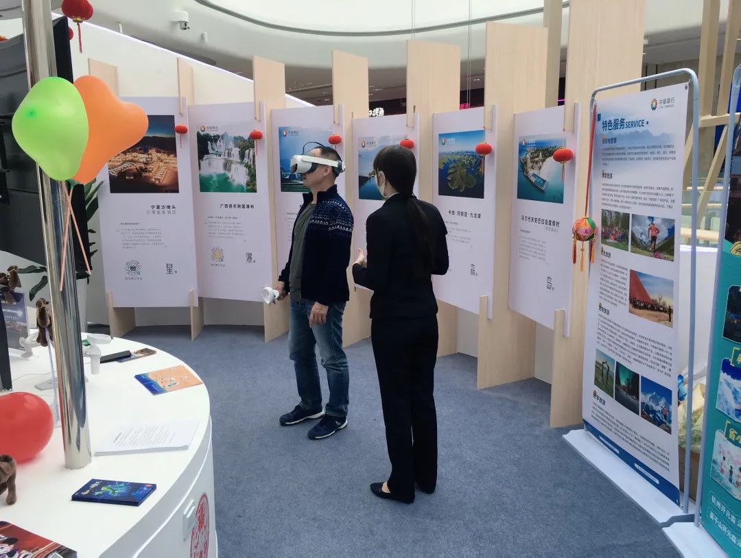 The digital tourism program brought tourists brand-new experience. The VR exhibition hall provided by the scenic area of CTG in the Haikou International Duty-Free Shopping Complex became the favorite of all tourists, be children or adults. Wearing a VR headset, the tourists could travel through long distance to enjoy a virtual journey of magnificent China. They can observe stars, go sand skiing, and fly over the Yellow River at the Shapotou Tourist Resort…