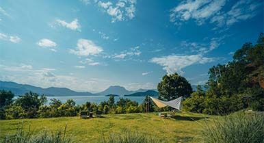 瀘沽湖面積50多平方千米,海拔2690米,湖水清澈蔚藍,被譽(yù)為高原明珠。湖中有五個(gè)全島、三個(gè)半島和一個(gè)海堤連島,形態(tài)各異,翠綠如玉。湖的西北面,是摩梭人的格姆女神山;湖的東南面,與草海連接,淺海處茂密的蘆葦隨風(fēng)蕩漾,蔟蔟的花草迎風(fēng)招展;湖周,茂密的原始森林里珍稀動(dòng)物出沒(méi)其間,給人幾分畏懼,幾分野趣;湖畔,阡陌縱橫,田園萬(wàn)頃,人們日出而作,日落而息,木摞房舍,炊煙裊裊,村寨牧歌陳陳,漁火點(diǎn)點(diǎn)。一派景象萬(wàn)千的農家農園,令人流連忘返。